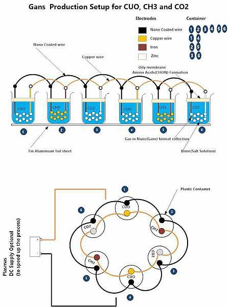 做“甘斯GANS”只需一個塑膠儲物箱, 海水或是加海鹽的蒸餾水(大家常只用逆滲透水做), 一塊鋅片加一片奈米鍍層過的銅片, 再加兩條銅電線都連到中間的一個LED燈, 而另兩端則連到鋅片與奈米鍍層過的銅片上即可開始生產二氧化碳甘斯。 (若加用漁缸打泡機產量更快更大)