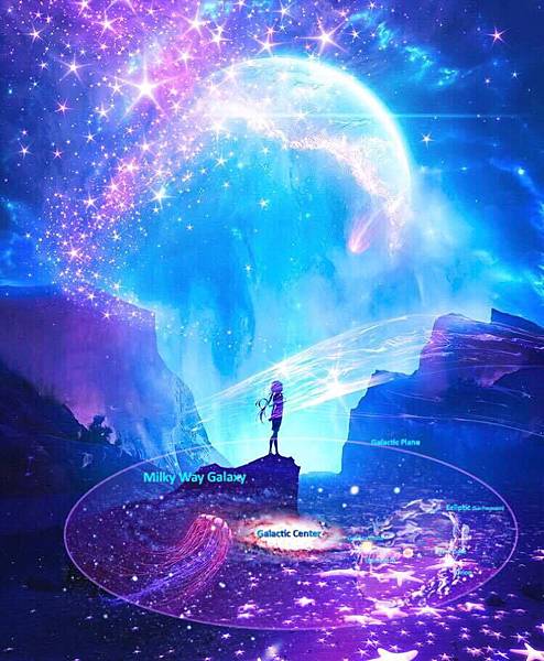 3.觀想銀河中央太陽發出一道帶電藍光。觀想光柱穿過太陽系內所有的光之存有,穿過自己的身體,進入地球的中心。觀想地心發出另一道帶電藍光。觀想光柱往上穿過自己的身體;連結太陽系內所有的光之存有以及銀河系。花幾分鐘觀想上下流動。