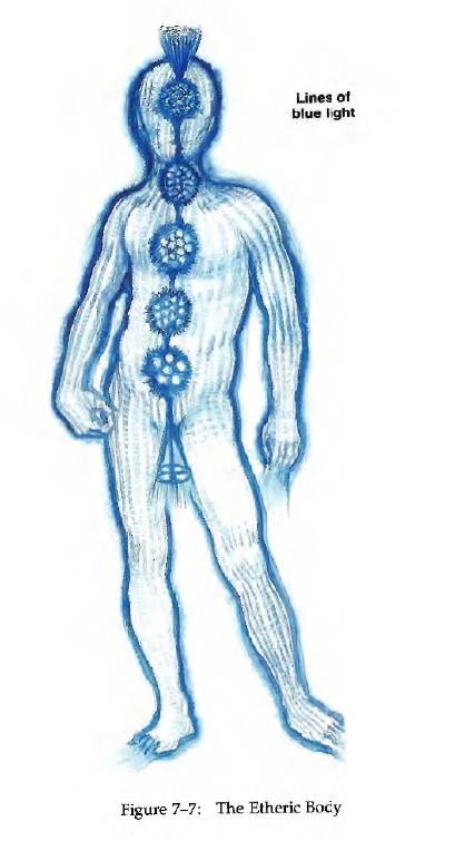 以太體(以太,界於能量和物質之間的狀態)由能量細線組成,這些線“像閃爍的光網”,類似電視屏幕上的線。擁有肉體的所有結構,包括所有解剖結構和器官。